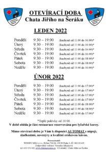 Otevírací doba leden+unor 2022
